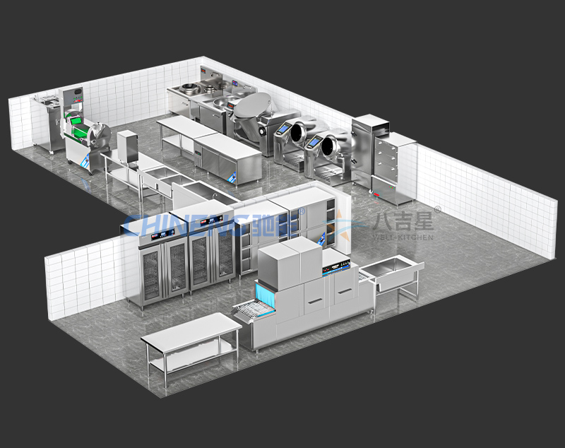 八吉星大型食堂廚房工程解決方案,專供機關,學校,企業,工廠,部隊等特定場所大型廚房工程,提供廚房功能區設計,廚房設備配套。可根據具體場景功能需求由專業的食堂廚房工程師量身定制。